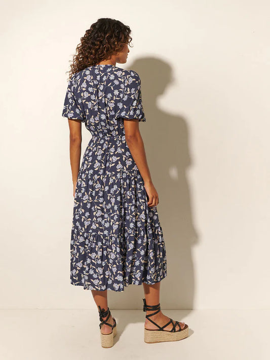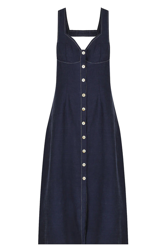 Shona Joy Aurier Long Sleeve V Neck Midi Dress
