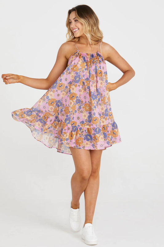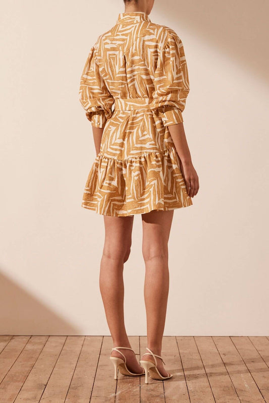 Shona Joy Keyhole Mini Dress - Mango/Oatmeal