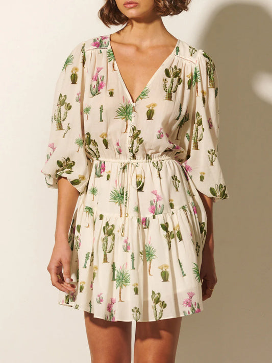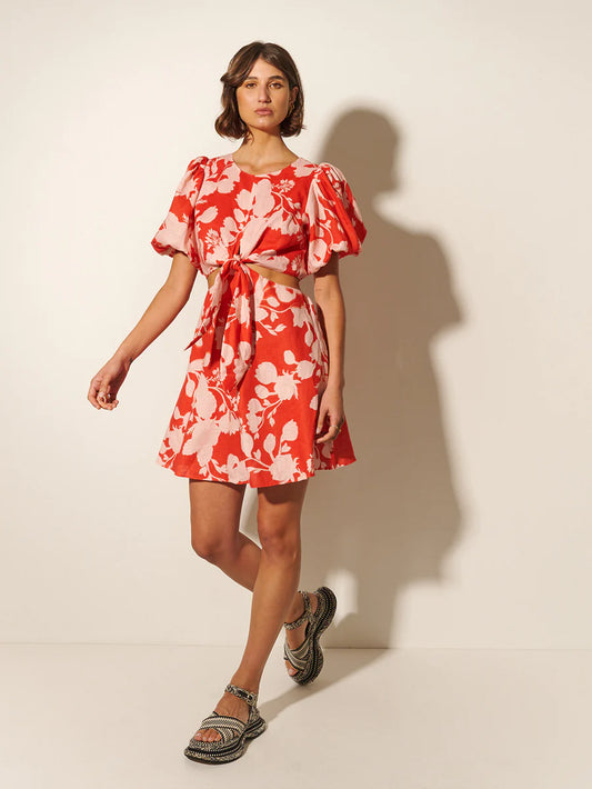 Kivari Hacienda Tie Front Mini Dress - Burgundy