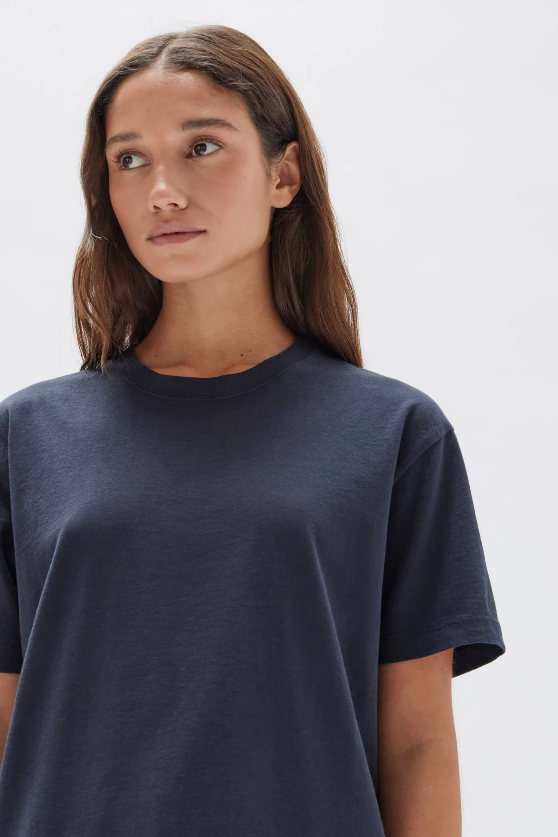The Womens Base Organic Tee is a capsule wardrobe essential. This crew neck tee features our signature relaxed fit and is made from 100% organic cotton jersey with a softly structured, substantial feel that will hold its shape.