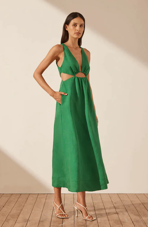 Shona Joy V Neck Cut Out Midi dress - Tree Green