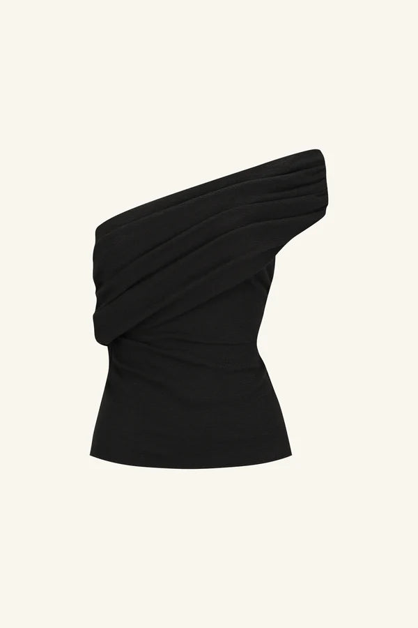 Asymmetrical one shoulder top in black in a soft cotton jacquard.