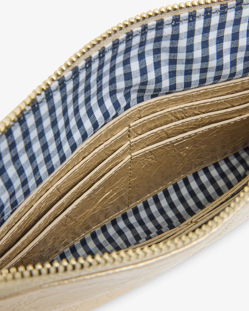 The Elms + King Bowery Wallet offers the functionality of a wallet, with the hands-free ease of a cross body. Made from premium polyurethane with 14-karat light gold-plated hardware, the Wallet has space inside for 12 credit cards and two open top slip pockets. With its adjustable/removable crossbody strap, this piece can be used as a compact clutch, shoulder bag or crossbody bag