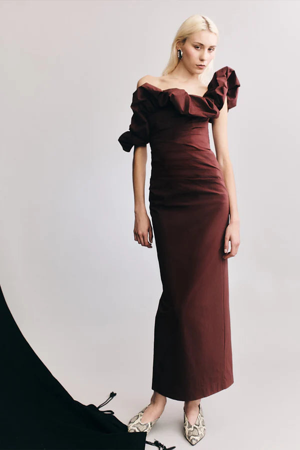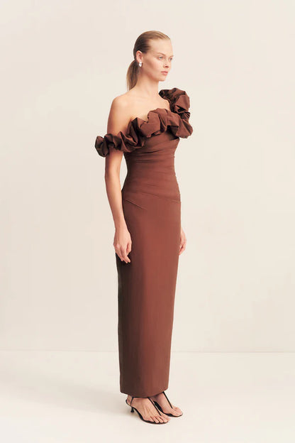 Campbell Ruffle Draped Maxi Dress - Espresso