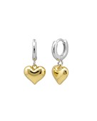The Celine sleepers feature a silver huggie hoop with a gold heart hanging pendant. This piece's mix metal will add a pop to your everyday outfits.