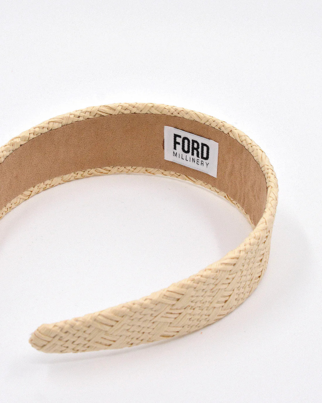 The summery new addition to the hair accessory world, "COMO" by FORD MILLINERY is a natural straw flat headband that adds a simple sense of perfection to any outfit. This straw headband is the perfect way to add just the perfect lift to your outfit.