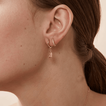 The Ellie Sleepers featuring small hanging charm. The perfect style to stack with your favourite sleepers.