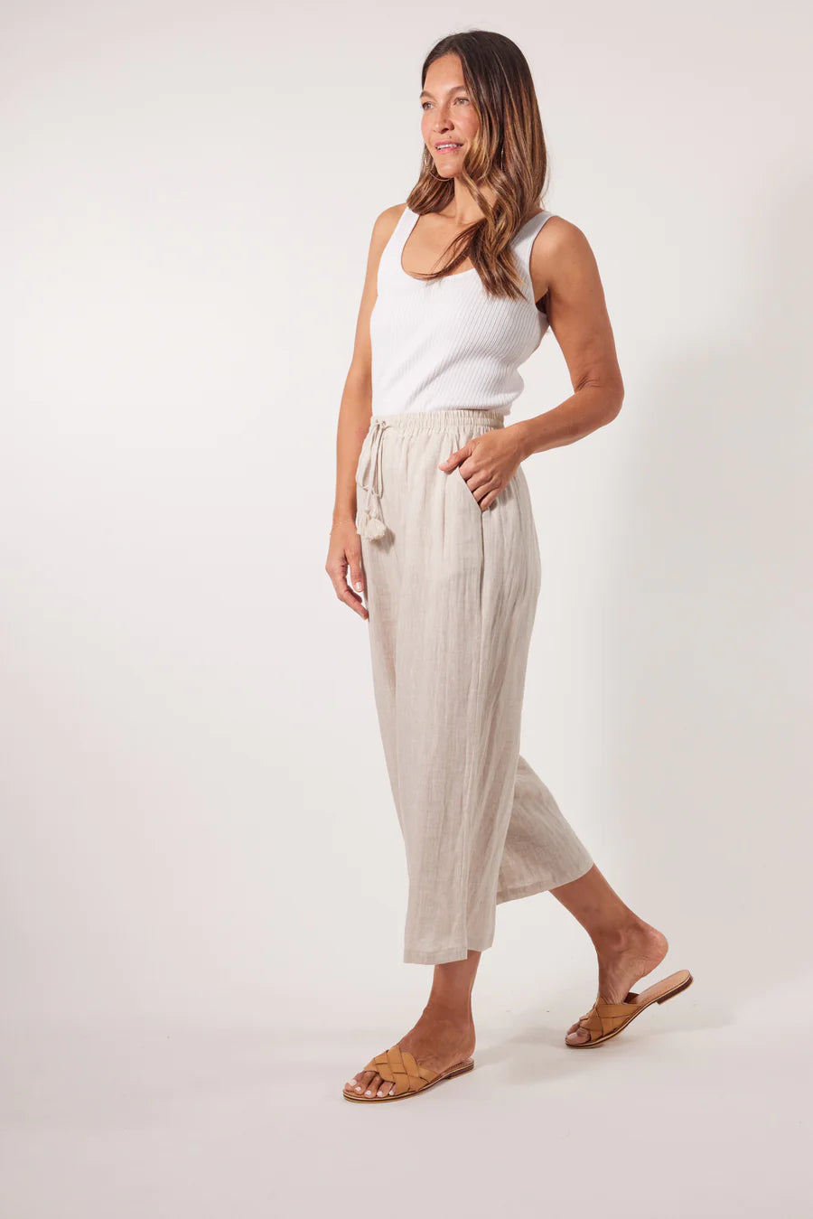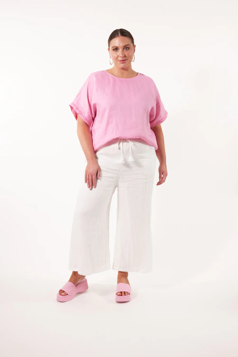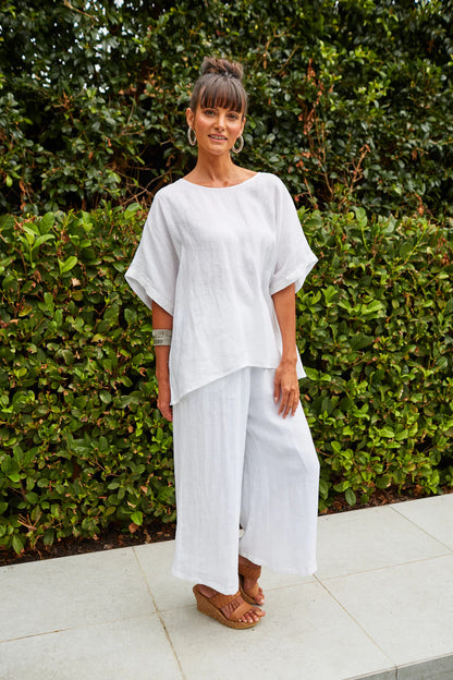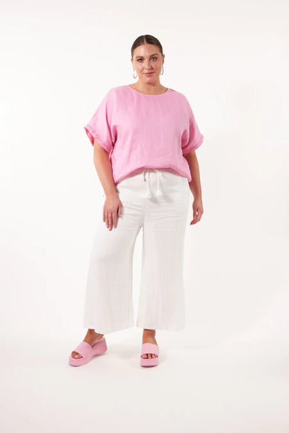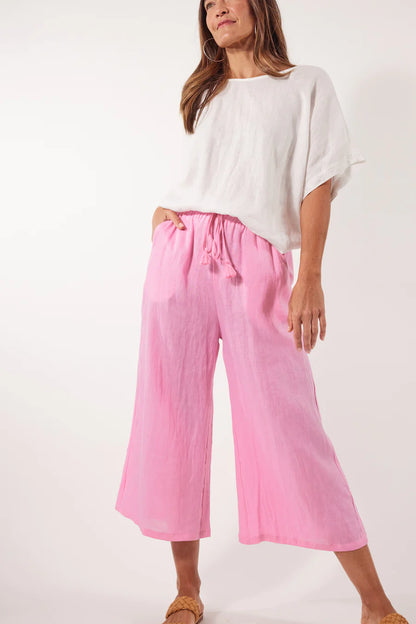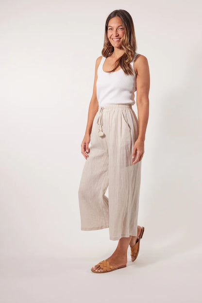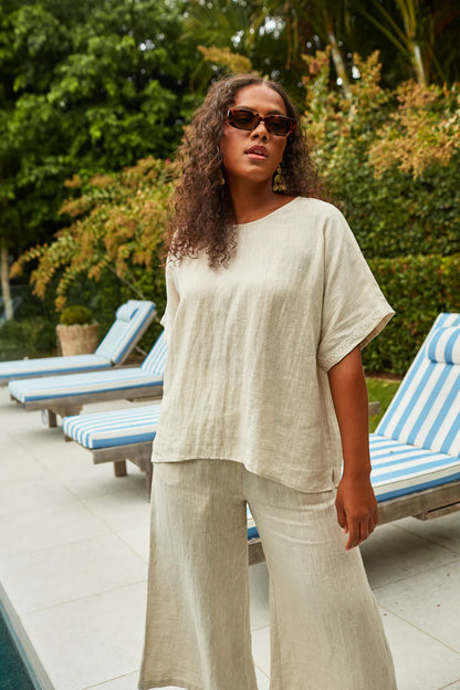 Step into comfort and style with the Gala Pant, crafted with a luxurious Ramie fabric. The elastic waist and drawstring offer a perfect fit, while the loose, flowy, and breezy design adds a touch of effortless elegance. Match them with a Ramie blouse and sandals for a sleek and contemporary look.