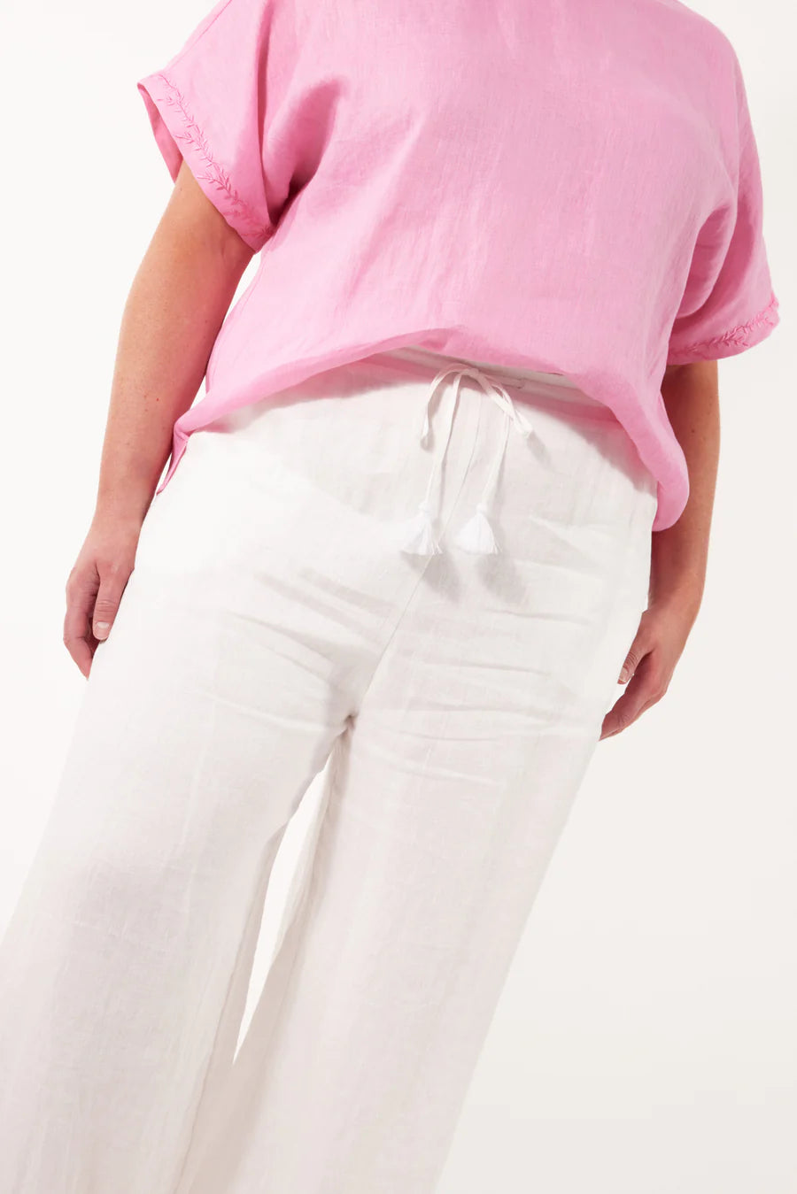 - Elastic waist with drawstring and tassel