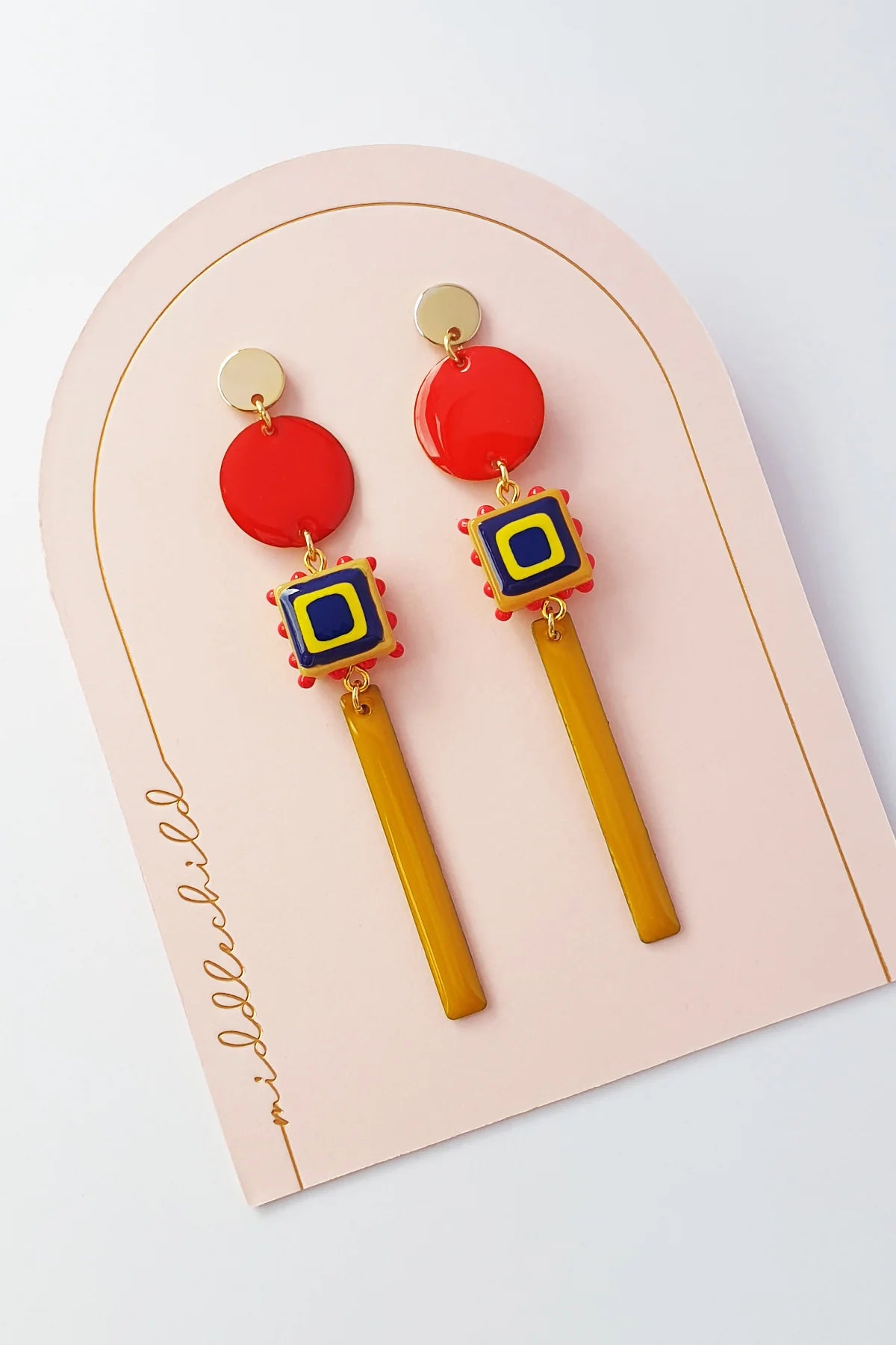 So eye-catching you won't be able to look away. Our Gazette earrings feature a mesmerizing lampwork bead and are paired back simply and perfectly with enamel shapes in the most sublime colour combinations.