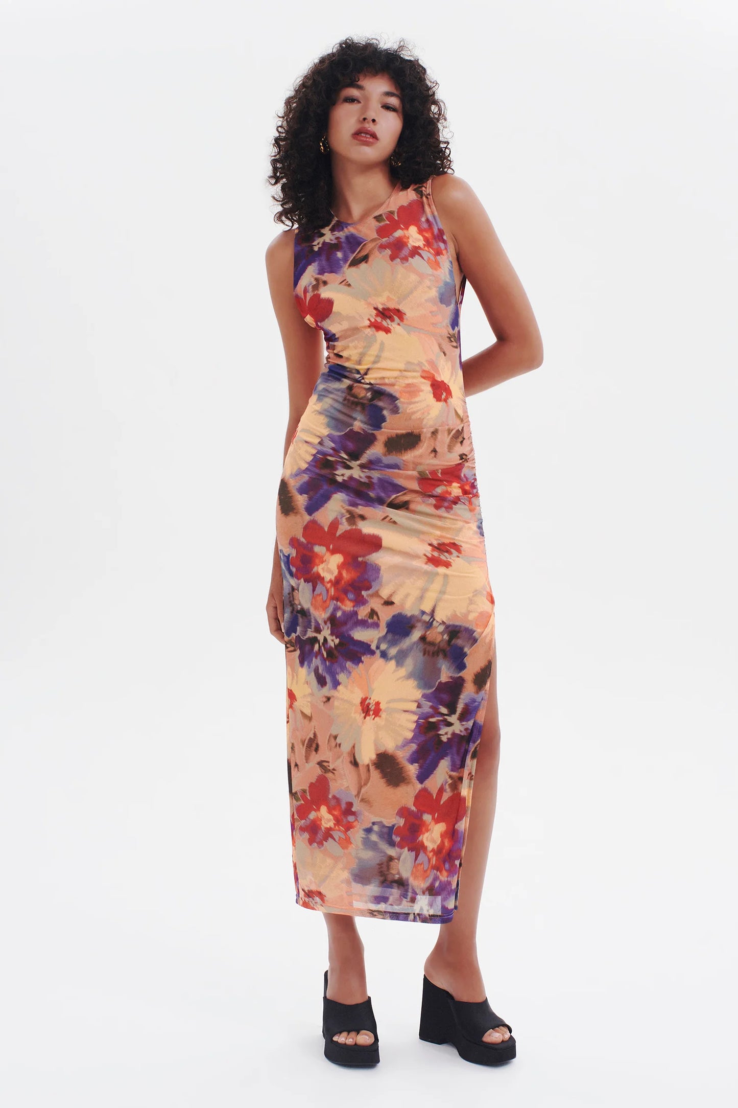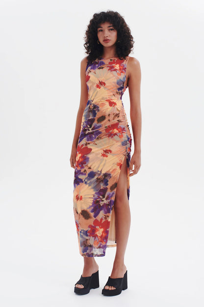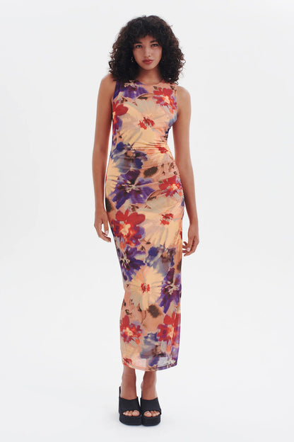 The Golden Hour Midi Dress is a fully lined, bra-friendly, mesh longline dress. It features gathering on the waist and a thigh high split for a flattering and comfortable fit. Our Vintage Floral print makes it a versatile wardrobe piece - perfect for dressing up or down.