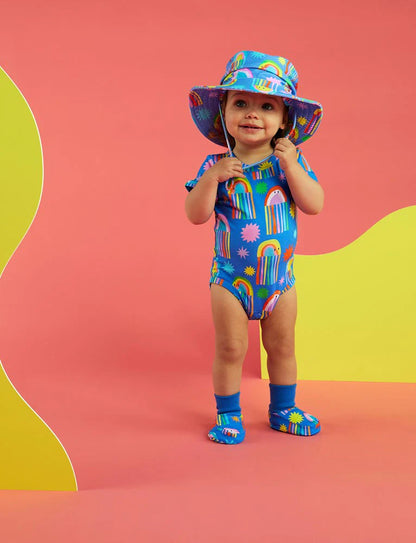 Our short sleeve baby suit features a snug fit and convenient snap closure for easy nappy changes.