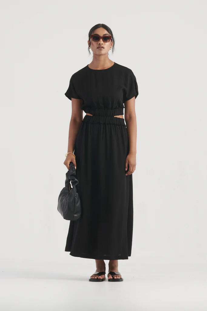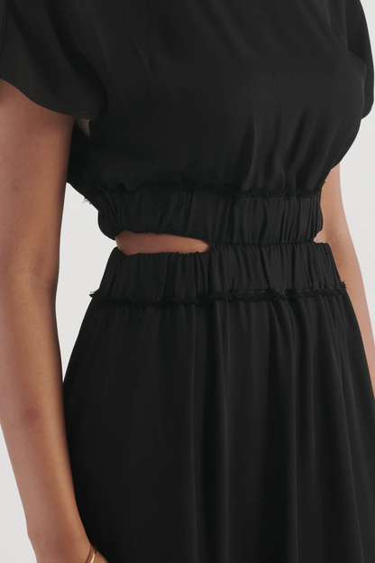 Angelic and feminine. The Ilaria Dress by Chancery the label is the perfect piece to celebrate life in. Cut in a stunning stretch textured fabrication, showcasing a sweetheart neckline, and frill trim detailing. Style yours with simple nude heels to complete this look.