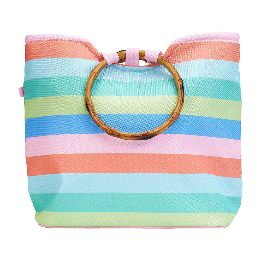 These zip up bags are fully insulated and can be used as a regular tote but with the added bonus of protecting your perishables. The faux bamboo handles complete the look! Easy wipe down interior and exterior. Size: 28.5cm x 40cm