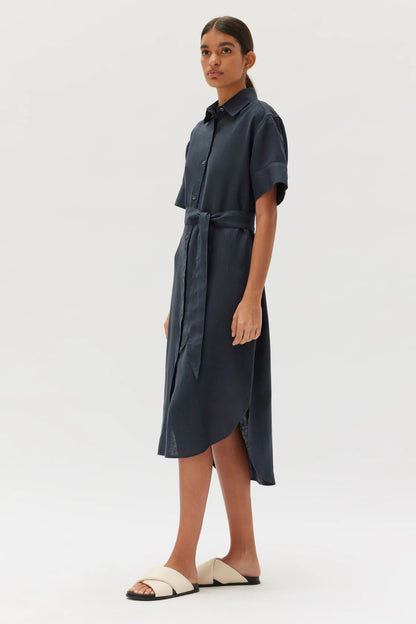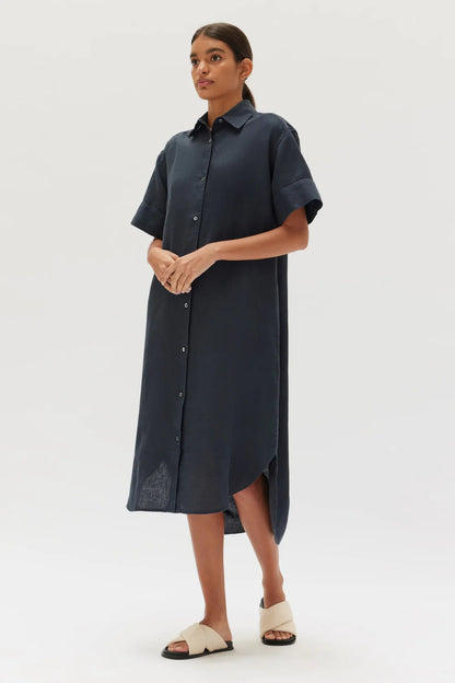 Linen Shirt Dress - True Navy