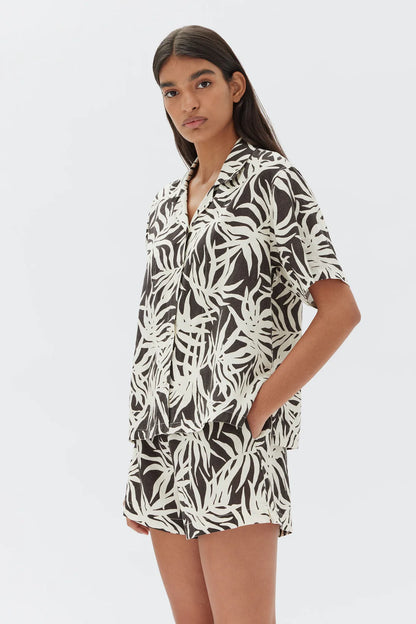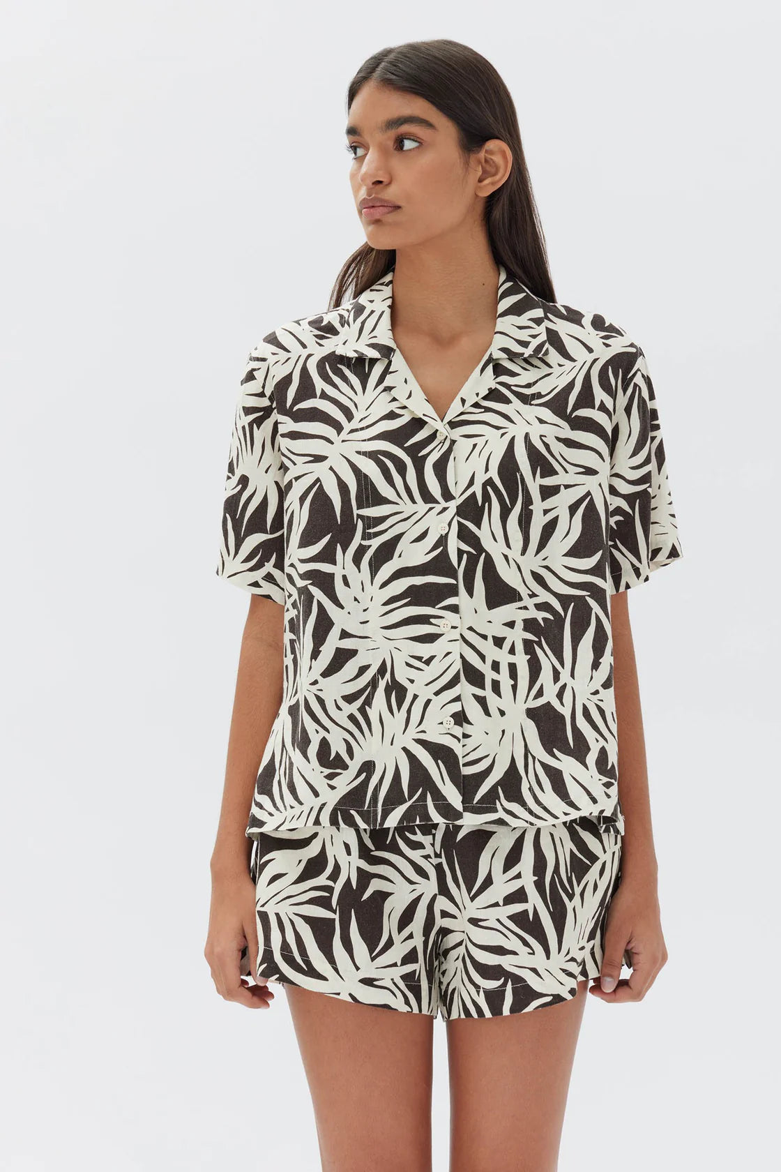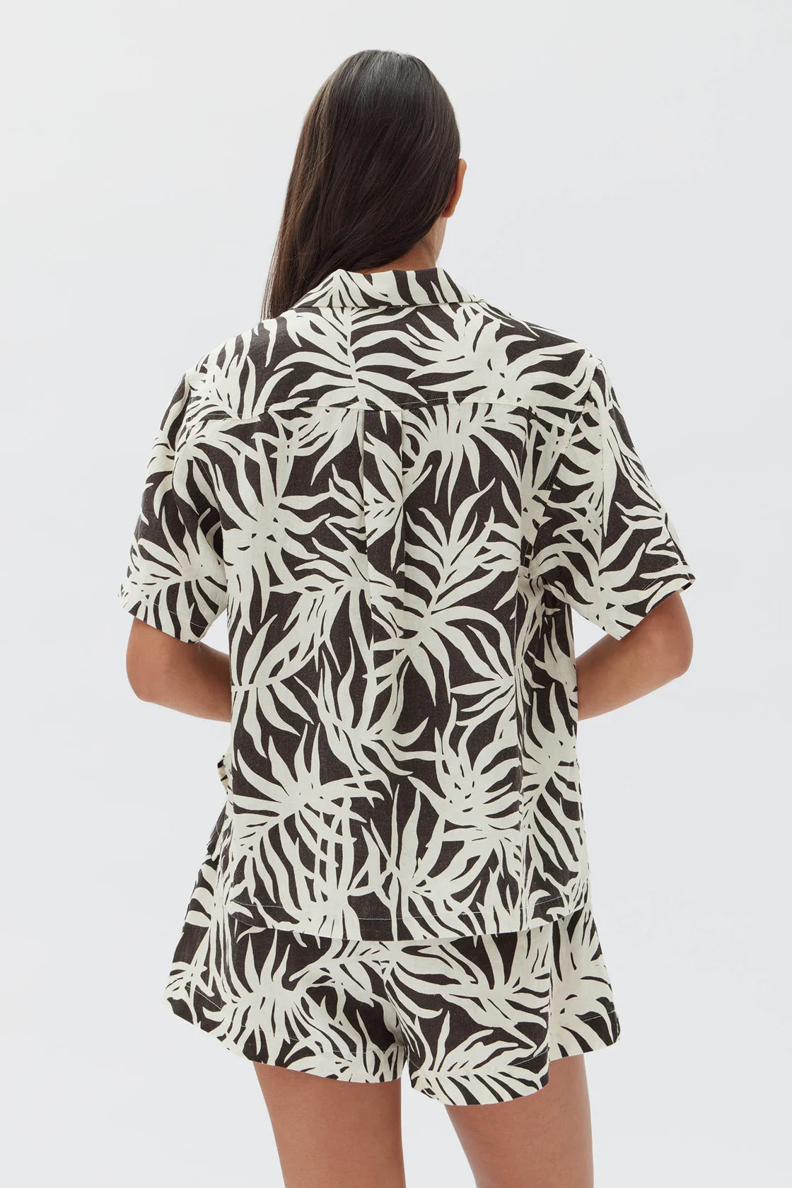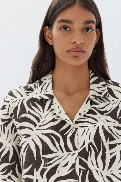 The Loula Print Shirt is made from pure French linen and features our seasonal print. It has a relaxed, easy-to-wear silhouette with a collar, side hem vents and two seam details down the front. Style this short sleeve linen shirt with your favourite linen pieces, buttoned up or layered over a tank.