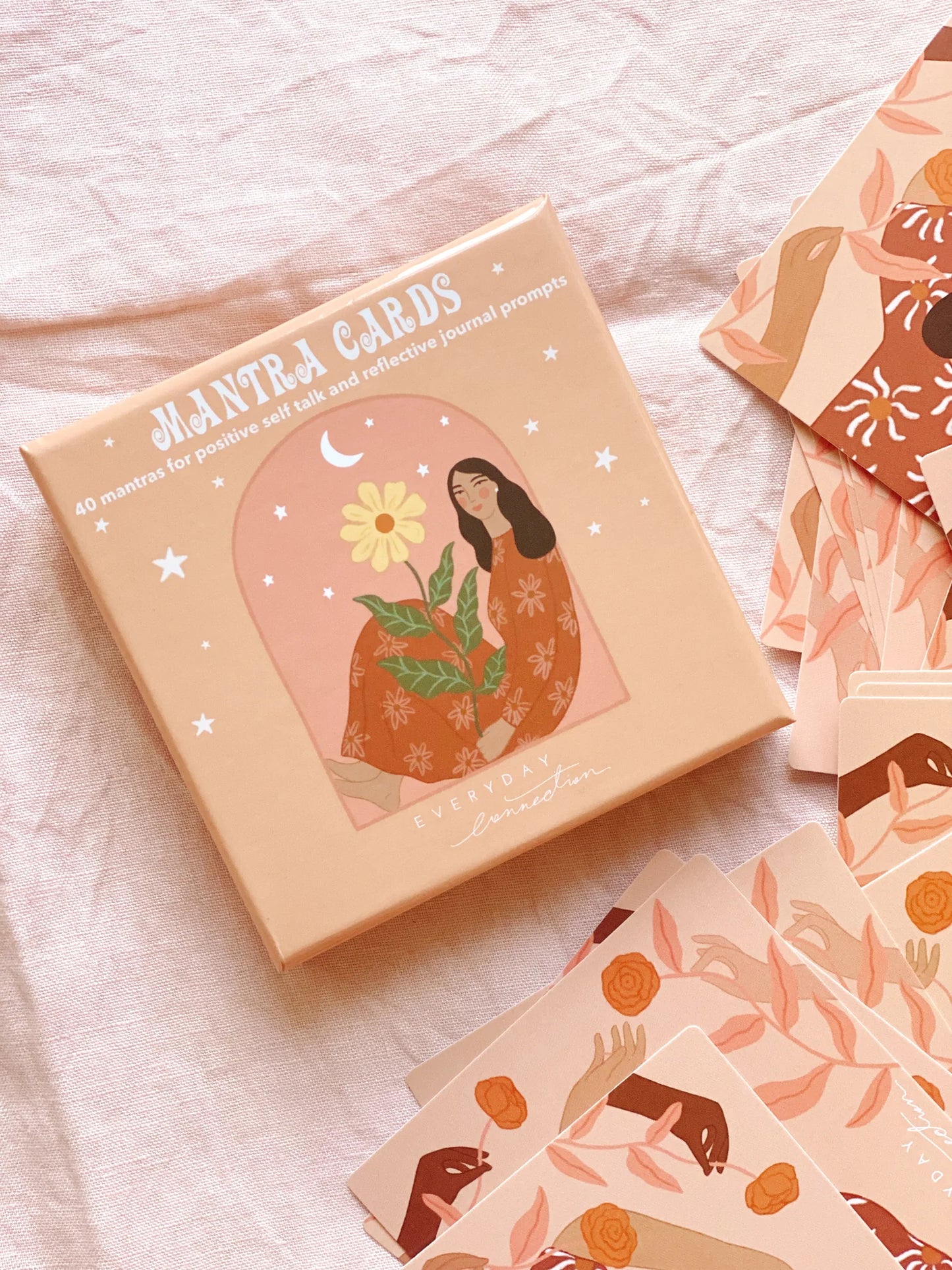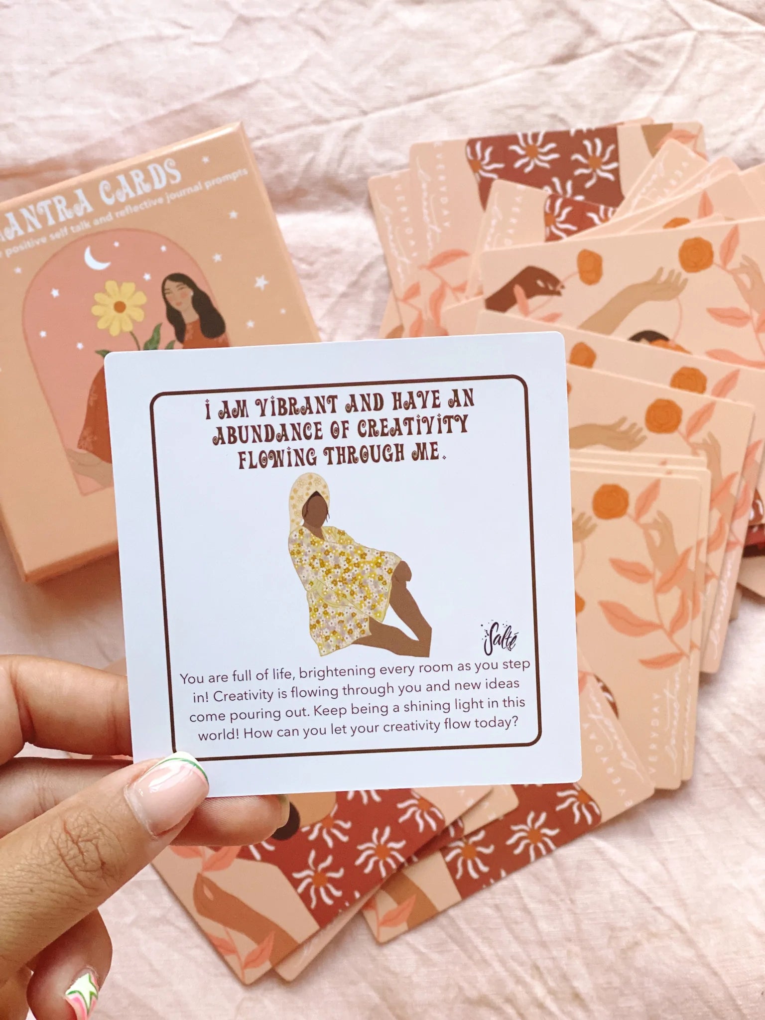 This deck includes 40 Mantra's for positive self talk and reflective journal prompts.