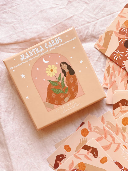 The way we speak to ourselves matters. These cards were created to help change the way to you talk to and about yourself to build your self confidence and sense of worth. Each mantra is a declaration that you will make to yourself, to shift into a more positive mindset. Each card features a powerful mantra, message, hand drawn illustration and journal prompt to help guide your day.
