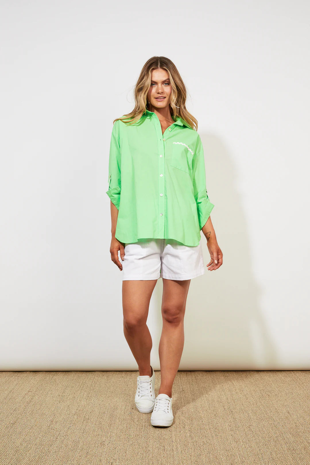 Whether you wear it to the airport or the pool bar, the Oahu Pocket Shirt has you covered! A classic silhouette, this shirt is refreshed by the bright summer colours and playful contrast detailing. Embrace endless possibilities by wearing it three ways: buttoned and tucked into a skirt, loose over a tank and jeans, or tied over your swimmers with shorts.