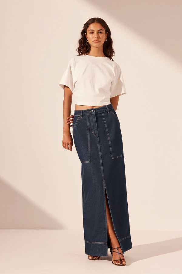 Shona Joy Alda Open Back Drawstring Crop T Shirt - White