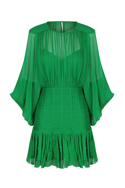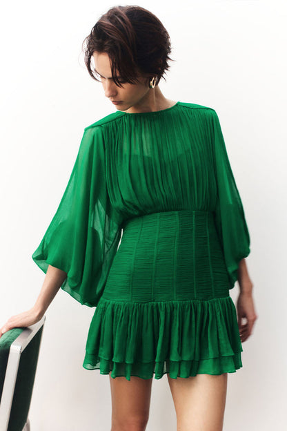 Shona Joy Malina Ruched Panelled Mini Dress - Tree Green