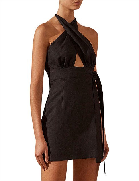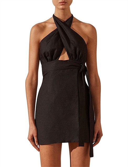Shona Joy Morgan Linen Crossover Wrap Mini Dress