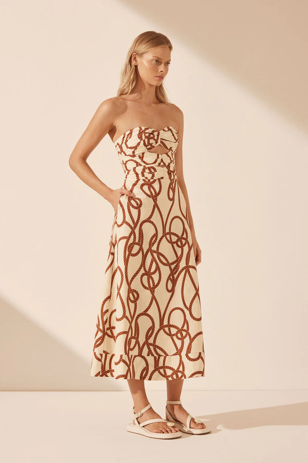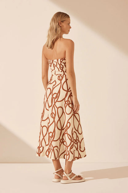 Shona Joy Mouillage Linen Strapless Cut Out a Line Midi Dress