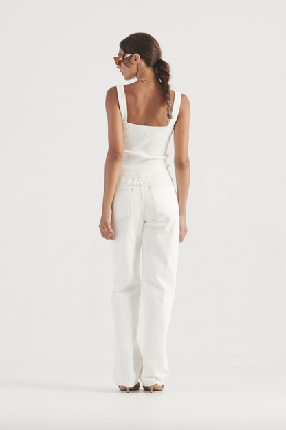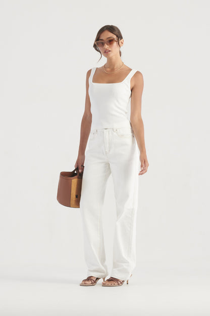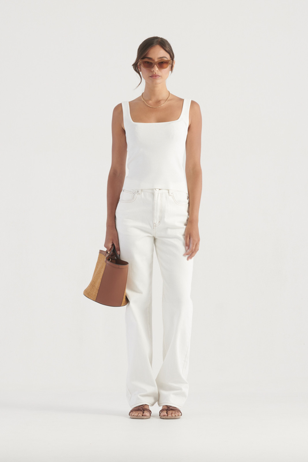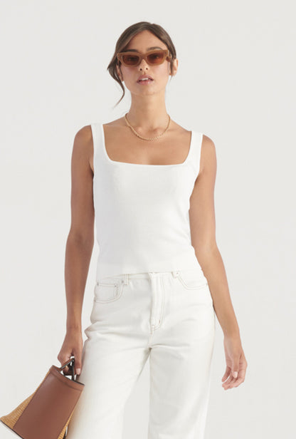 A 90's inspired square neck knitted tank. Crafted in a viscose nylon blend, the Sigrid Knit Top is designed to be lived in. The styling and layering options are endless with this essential wardrobe item.