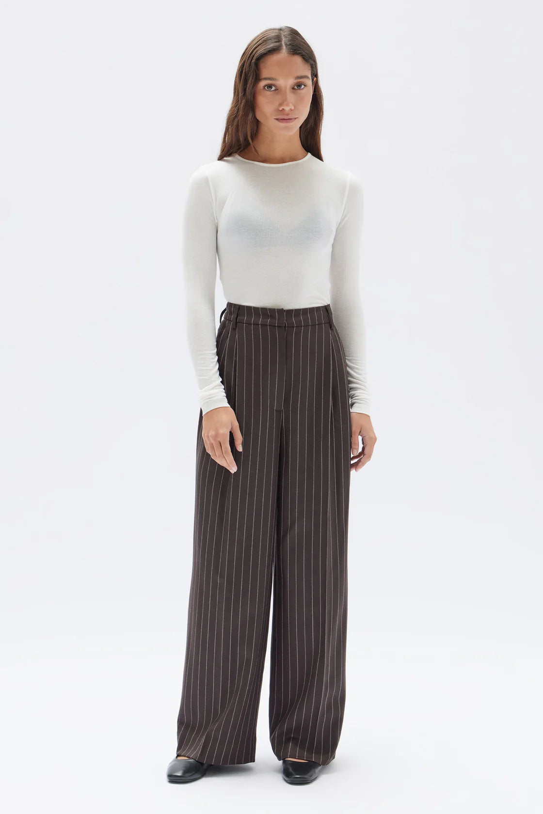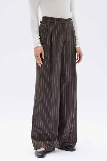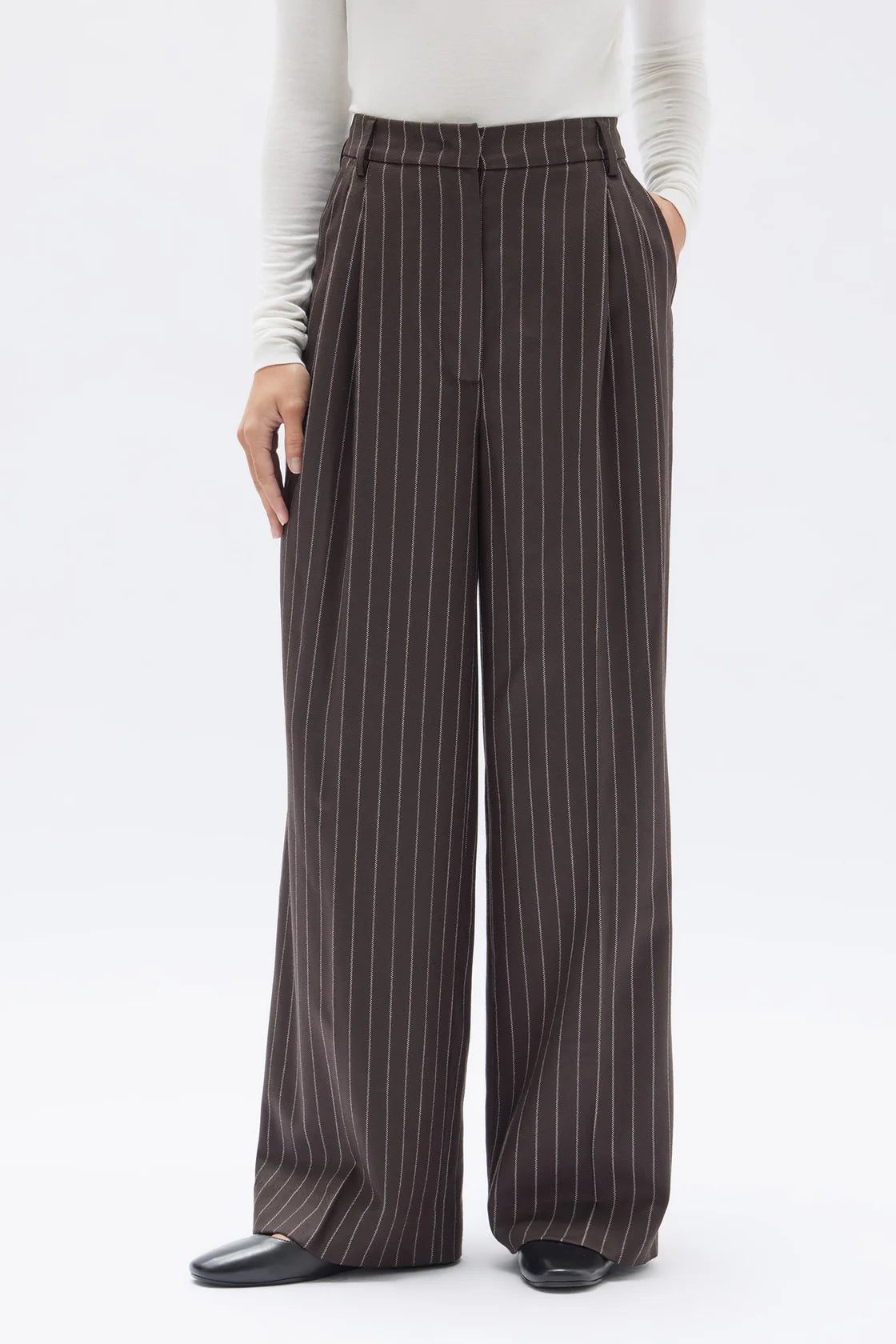 Refresh your suiting with the Sofia Wool Pinstripe Pant. Crafted from wool, this pant features a single front pleat, wide leg tailoring and is unlined. In a new chestnut colourway, this pant is designed to be styled with our Sofia Pinstripe Jacket or can be paired back with a simple tank or tee.