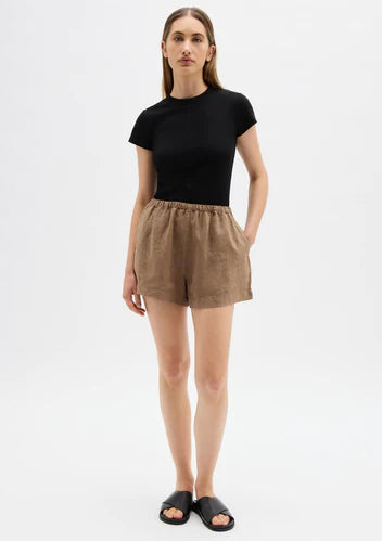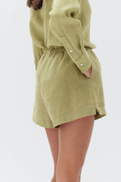 Our Stella Linen Short is made to feel casual, cool and incredibly comfortable. These elasticised shorts feature a stretchy waistband and side splits in the hem for an easy fit. Wear your linen shorts with a linen shirt in a similar shade, or style with a tee or tank on hot summer days.
