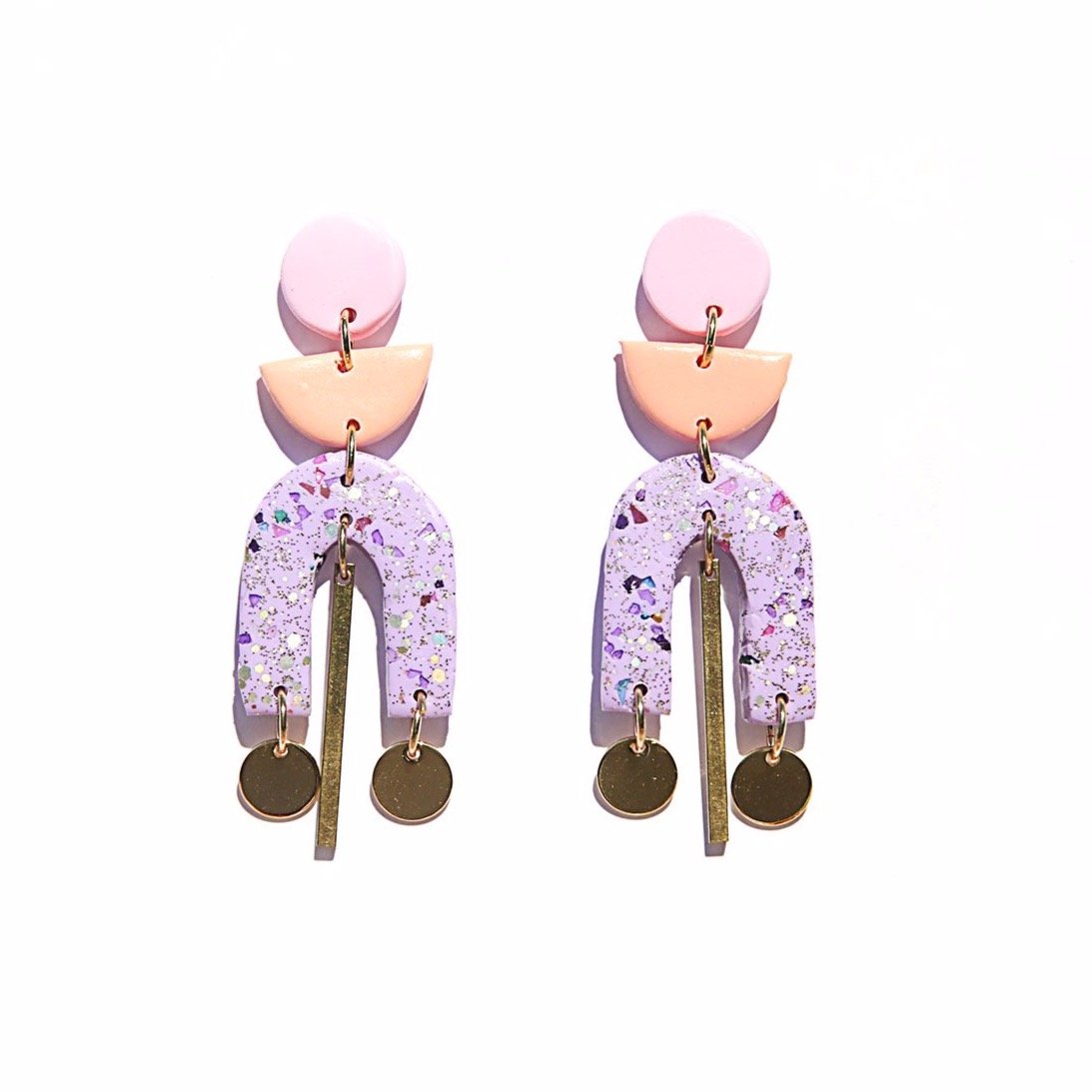 Handmade polymer clay earrings on surgical steel backs. These are a great statement earring and are very light on the ears. Available in two colours; Lavender and Blush.
