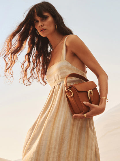 The Madelina Mini is designed with a distinct '70s-inspired silhouette that's chic and understated. Made from full-grain cowhide, it has a curved top handle that can be removed and a long strap that fits comfortably over the shoulder. An investment piece to treasure for years to come.