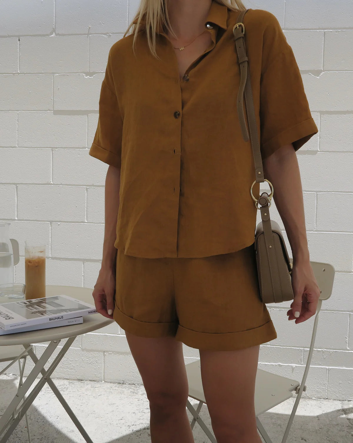 The Milon Shorts are a cool and practical piece. Throw them on when running errands for the day or when heading to the pool to relax. We love them paired back with the Louailles Shirt as a set or with a knit for those cooler days.