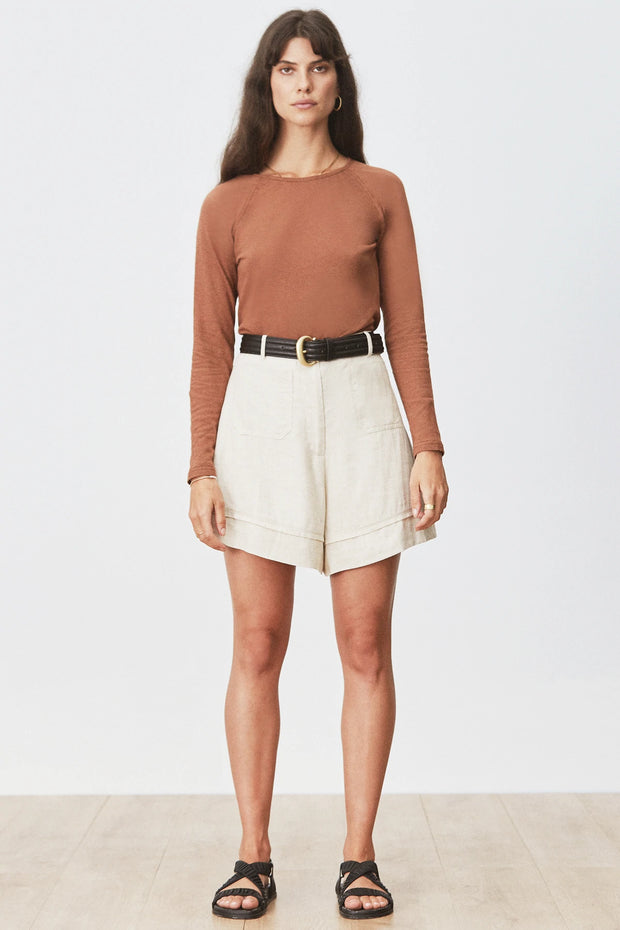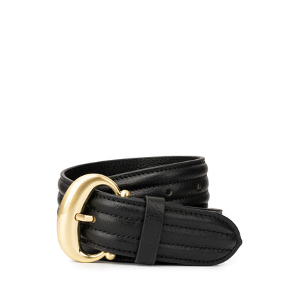 The Venus Belt is meticulously handcrafted from luxurious vegetable tanned cowhide, with a quilted finish and a polished gold buckle. Use it to cinch the waist of the Tellina Pants or slip it through the loops of your favourite jeans.