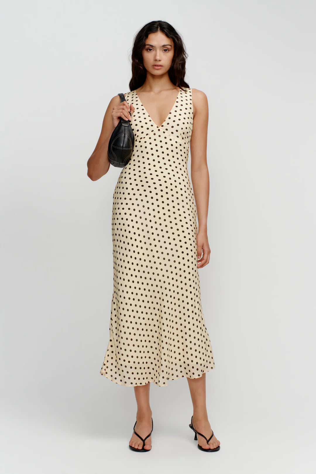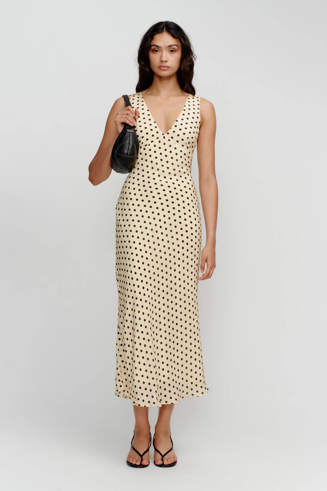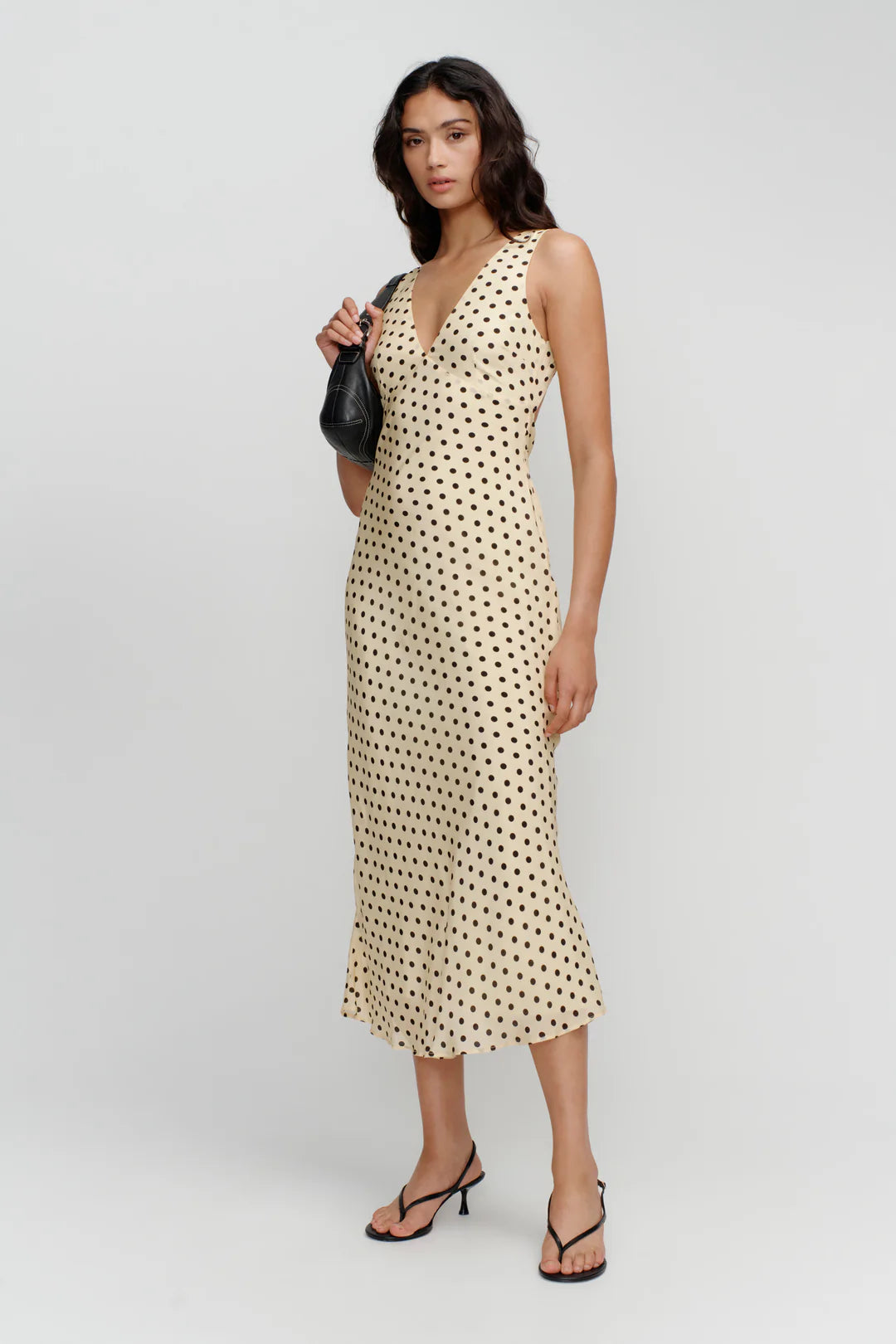The Tulip Dress is our gorgeous midi length slip style and an Ownley classic. Featuring a plunging neckline, an open back with a tie across the shoulders, and a relaxed comfortable fit. This is the perfect dress for any occasion, dressed up or down.