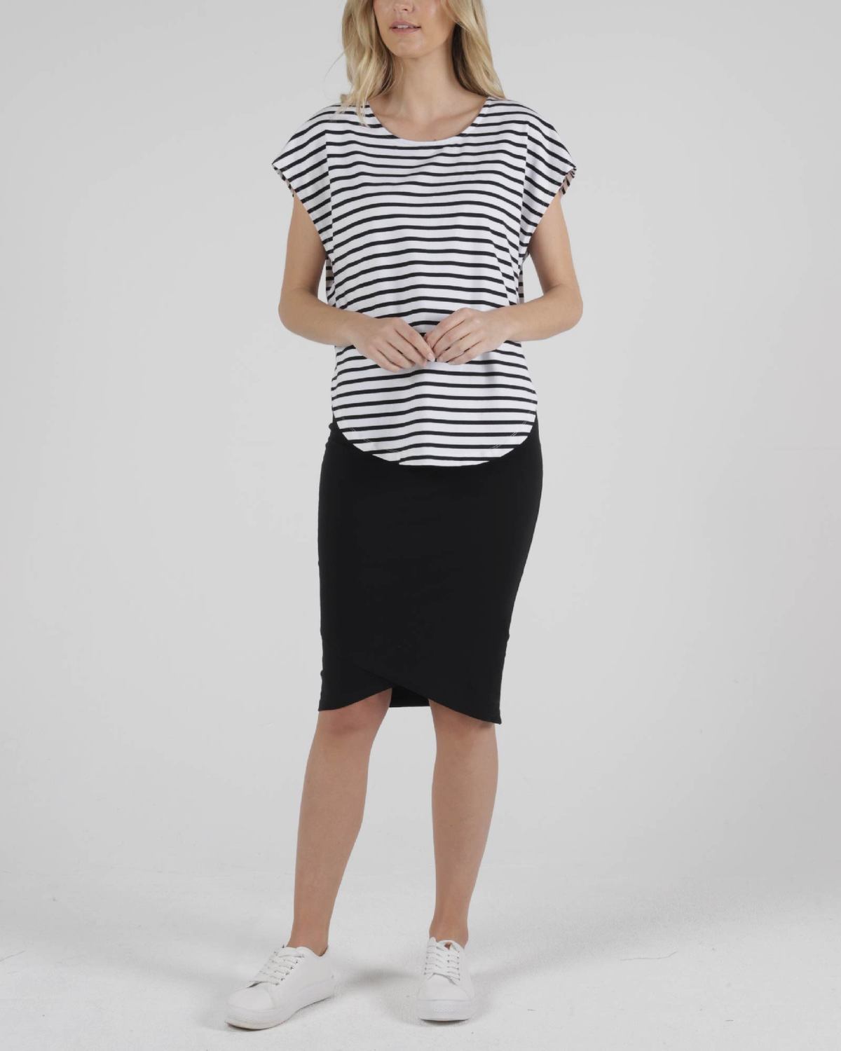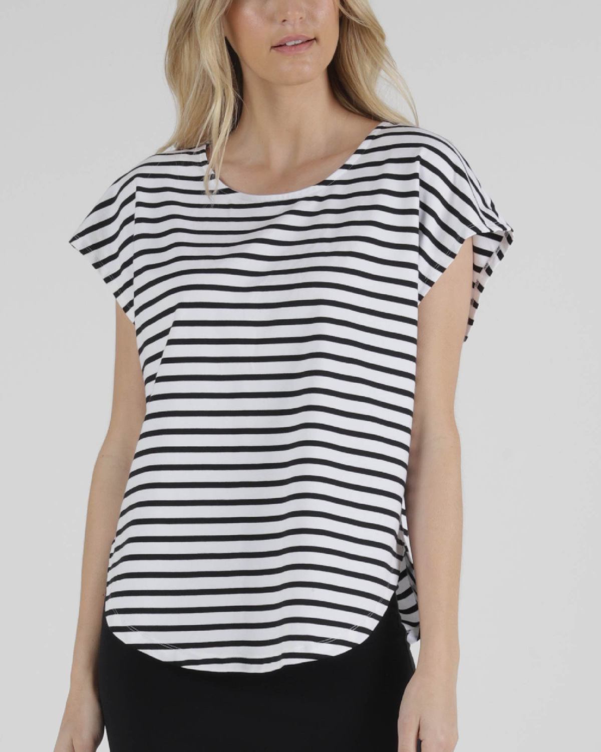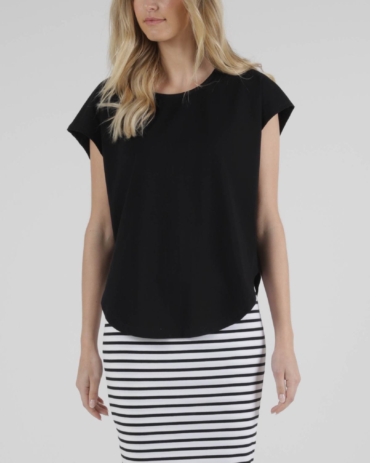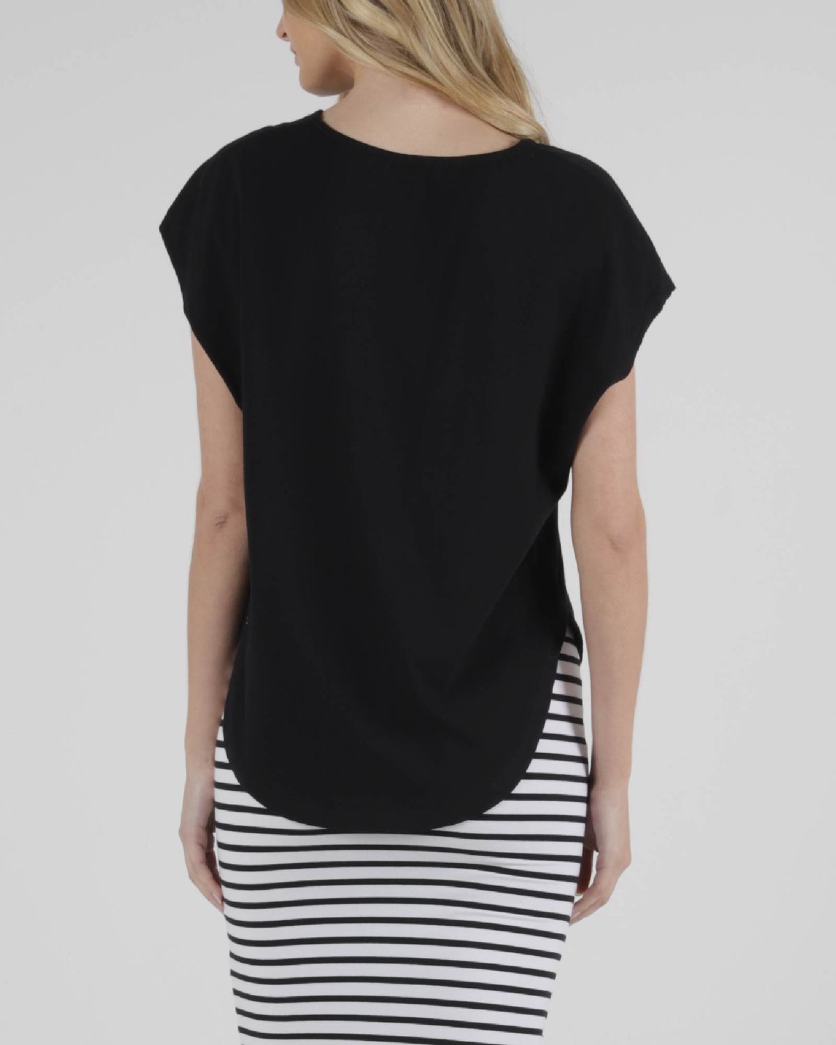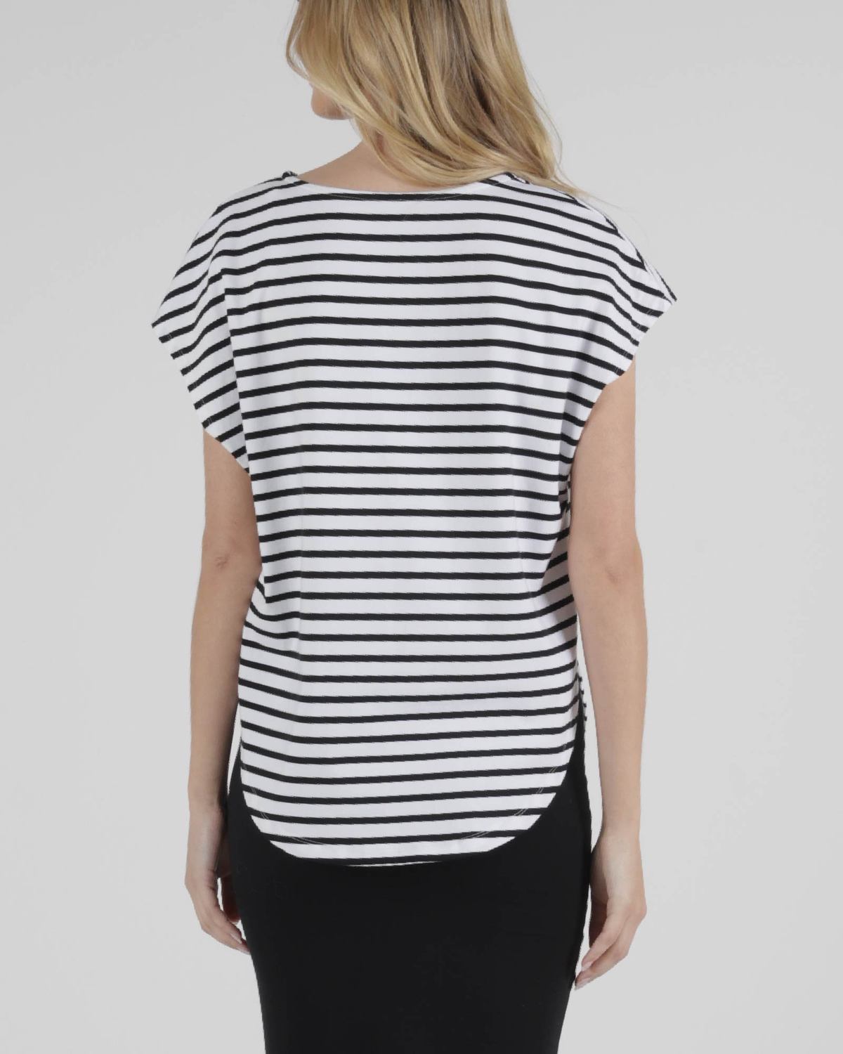 This top is available in Black, White, Black White Stripe and Blue Stone.