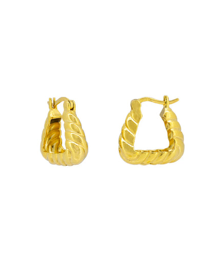 the Yuji hoops feature a sleek ridged design with a flat bottom for a unique touch. Elevate your style with these versatile earrings perfect to wear from day to night.