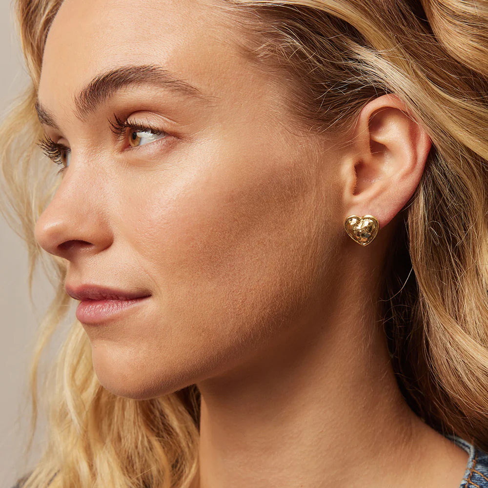 The Yvette Studs are a gorgeously sleek pair of heart earrings with a hammered metal look. Perfect for everyday wear or for that romantic special occasion.